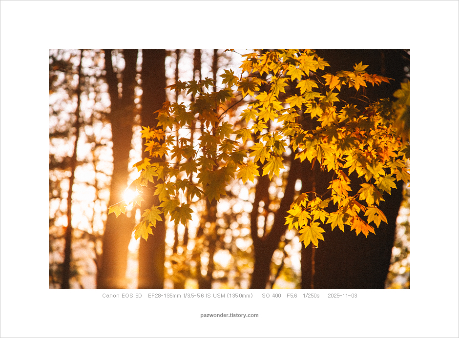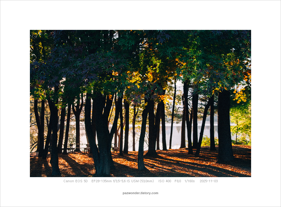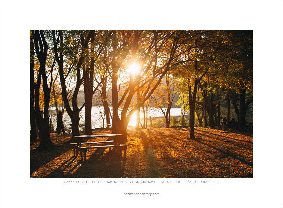 과천 서울대공원에서 가을 행복 (Canon 5D) 파즈PAZ 2025. 11. 10. 내가 좋아하는 곳에서 맘껏 사진을 찍을 수 있다는 건 행복이다. 이 가을날, 지는 해를 바라보며 생각에 잠기듯 그 느낌을 사진으로 담으며 진심으로 난 지금 행복한 시간에 있음을 깨달았다. 공유하기 게시글 관리 파즈 저작자표시 비영리 변경금지 (새창열림) '과천 서울대공원에서' 관련글 겨울 산책 (Canon 5D MarkII) 사진산책 맑았던 가을날(Canon 5D) 흐린 가을날(Olympus E-M5)