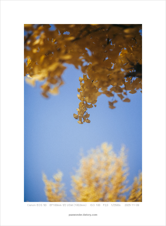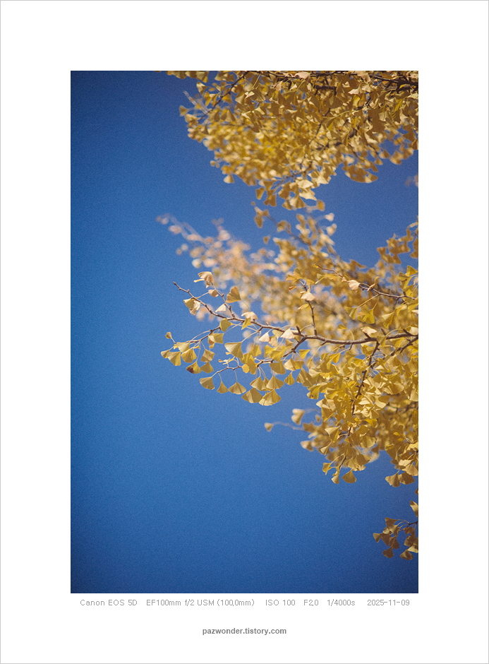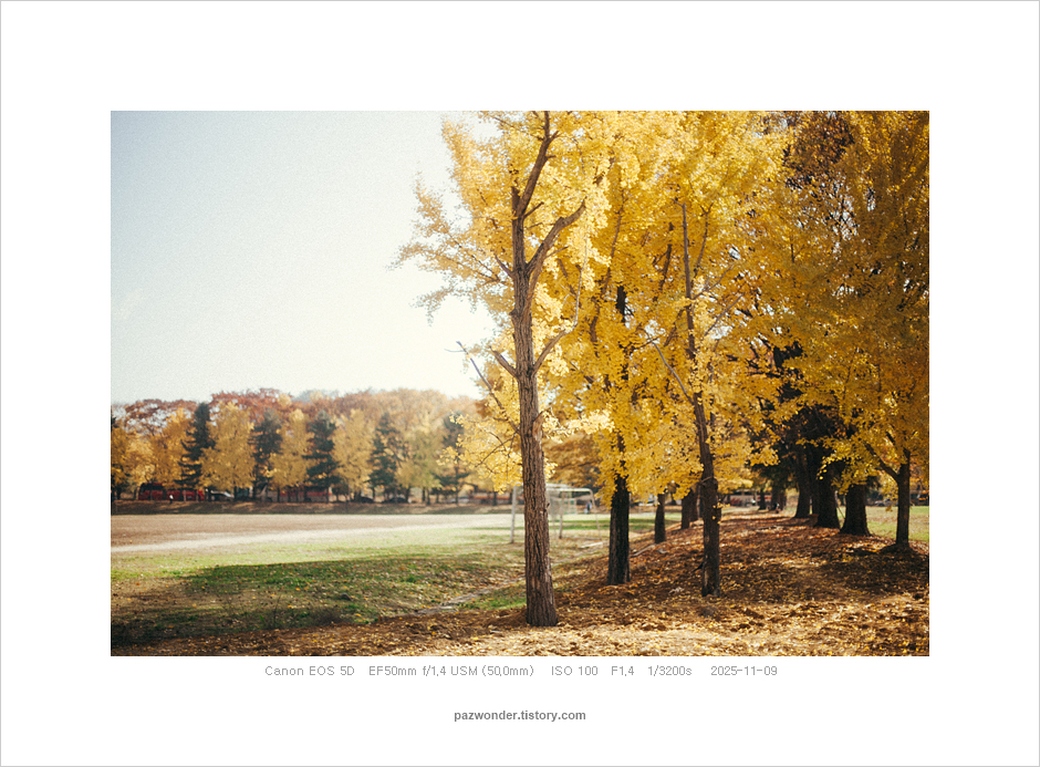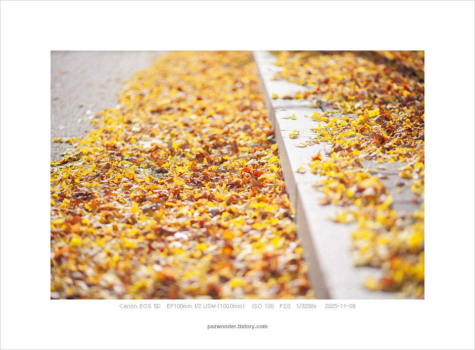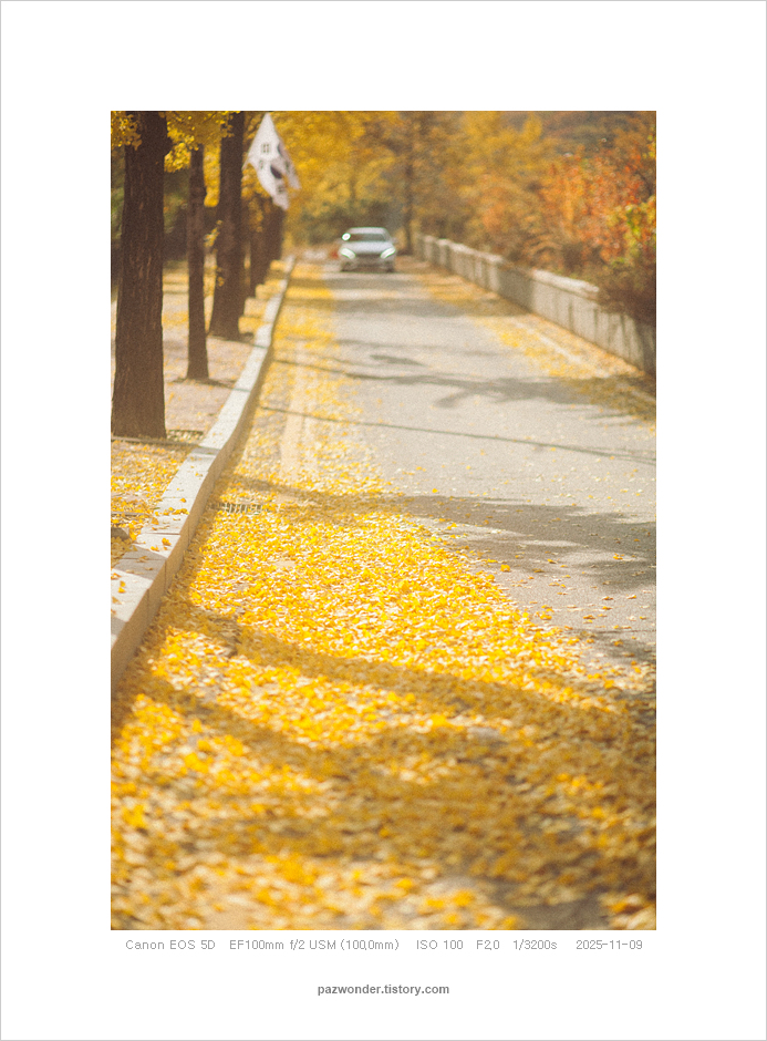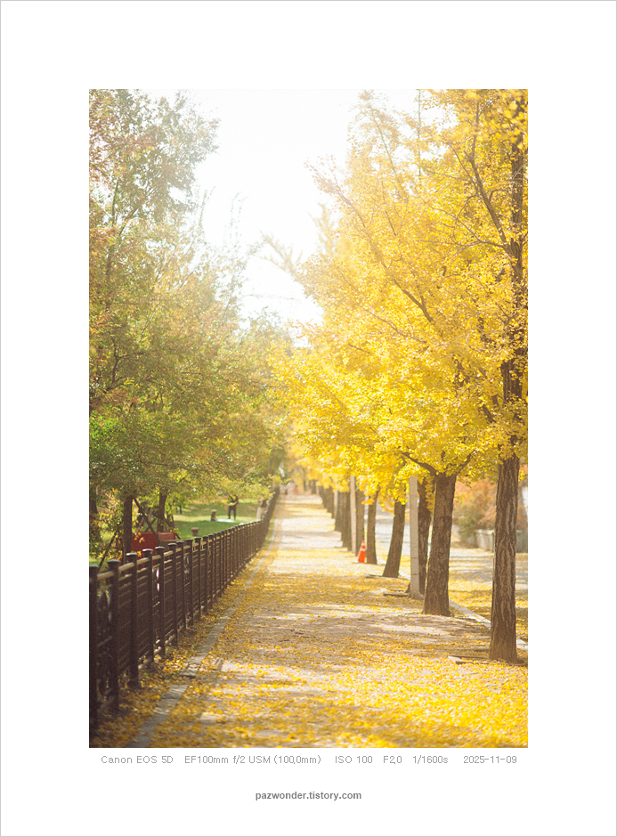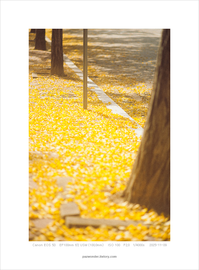 2025 가을 은행나무길, 과천정부청사(Canon 5D) 파즈PAZ 2025. 11. 14. 캐논 5D로 담아본 과천정부청사 주변 은행나무 풍경이다. 공유하기 게시글 관리 파즈 저작자표시 비영리 변경금지 (새창열림) '2025' 관련글 가을 막바지 단풍 산책 (Canon 5D) 가을 산책. 과천 현대미술관 (Canon 5D)(Olympus E-M5) 가을 은행나무길, 과천정부청사(Olympus E-M5) 나와 친해지는 시간 (Canon 5D)